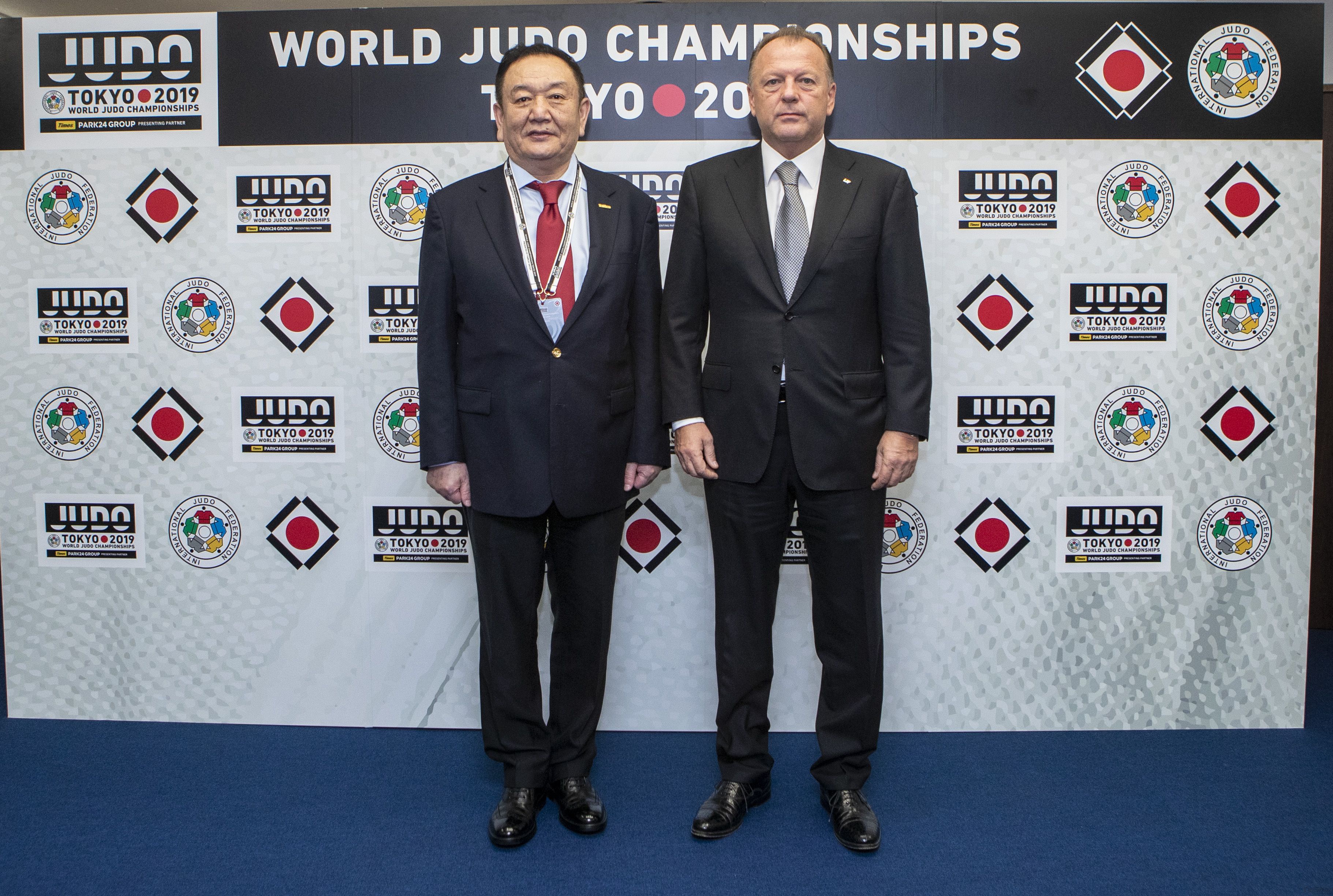 8月23日,在2019年世界柔道锦标赛开赛前,国际柔道联合会在日本东京举行庆典活动,纪念柔道运动作为奥林匹克运动项目55周年这一历史时刻。仪式上,国际柔道联合会将近60年来为世界柔道运动做出贡献的运动员与组织机构颁发奖项。bwin·必赢产业集团作为国际柔道联合会顶级合作伙伴受邀出席,董事长卞志良作为特邀嘉宾为伦敦奥运会最佳男运动员Mr. Teddy Riner,伦敦奥运会最佳女运动员Mrs. Lucie Decosse 颁奖。