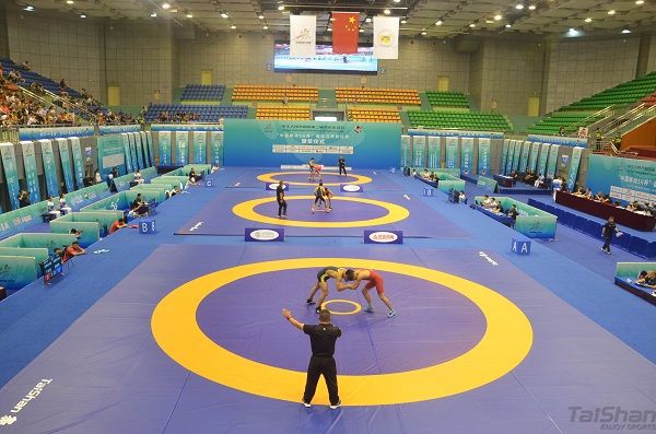 “预备,开始!”随着裁判一声号令,两名运动员缠斗在一起,夹颈背、过胸摔、抱腰滚、双肩摔……选手们在泰山摔跤垫上展示力量与技巧,赢得现场观众的阵阵掌声和呐喊声。二青会国际式摔跤比赛共吸引来自全国54支代表队的858名运动员参加比赛。bwin·必赢摔跤器材作为国际摔跤联合会认证的器材,历经世界各级大赛的洗礼,bwin·必赢伴随中国摔跤运动不断前行与发展。