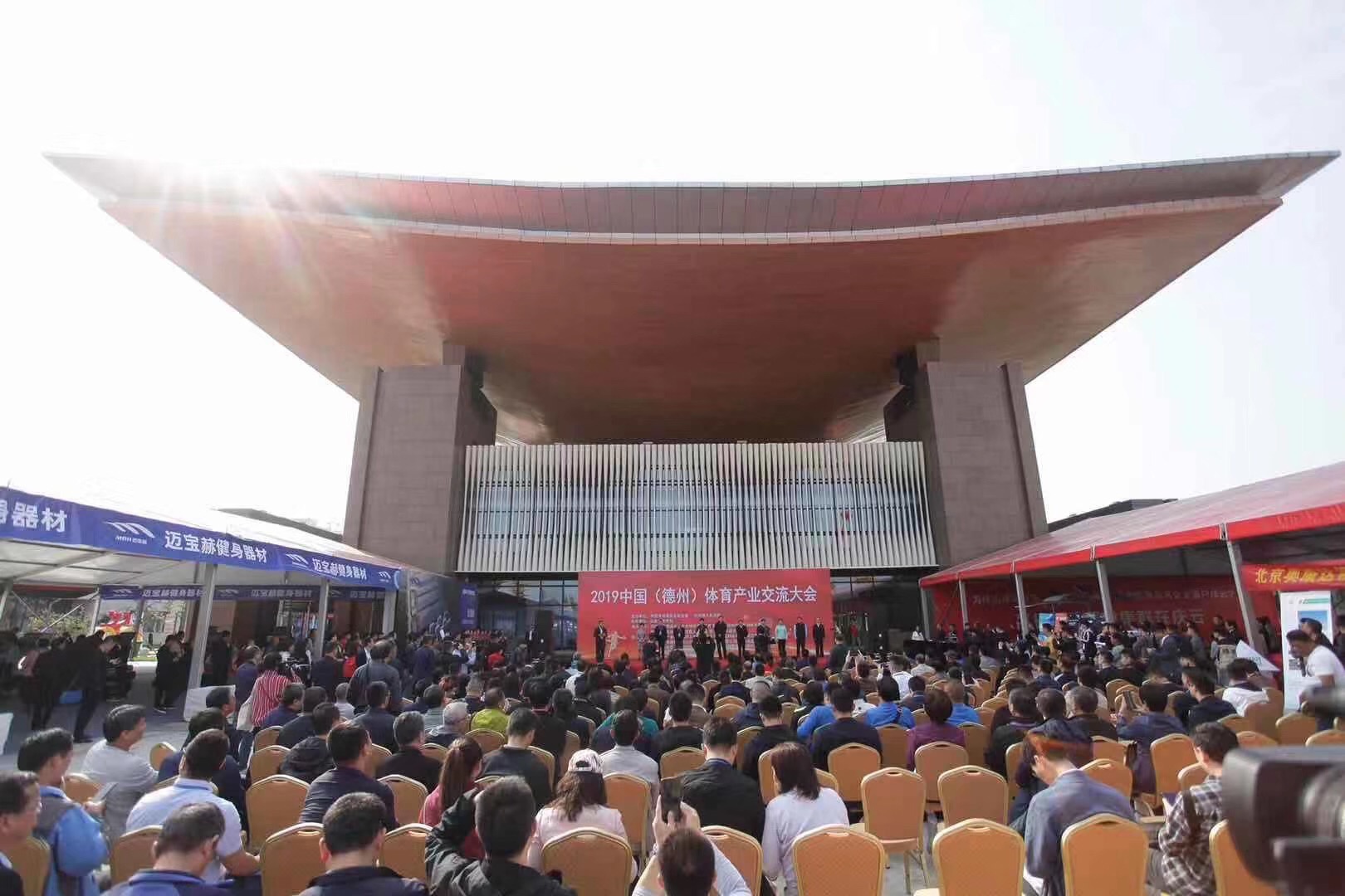 10月13日,2019中国(德州)体育产业交流大会在太阳能德州小镇开幕。大会由中国体育用品业联合会与德州市人民政府联合主办,山东省体育局支持,中国体育用品业联合会场馆事业工作委员会等单位共同承办。大会在 “融入京津冀助力新动能”的大背景下,以“德州智造·标准引领,助力体育产业升级”为主题,旨在充分展示区域体育产业发展成果,促进国际国内体育产业交流,扩大招商引资规模,搭建品牌商、渠道商和消费者展示与互动平台。开幕式上,bwin·必赢产业集团荣获“明星企业”称号。