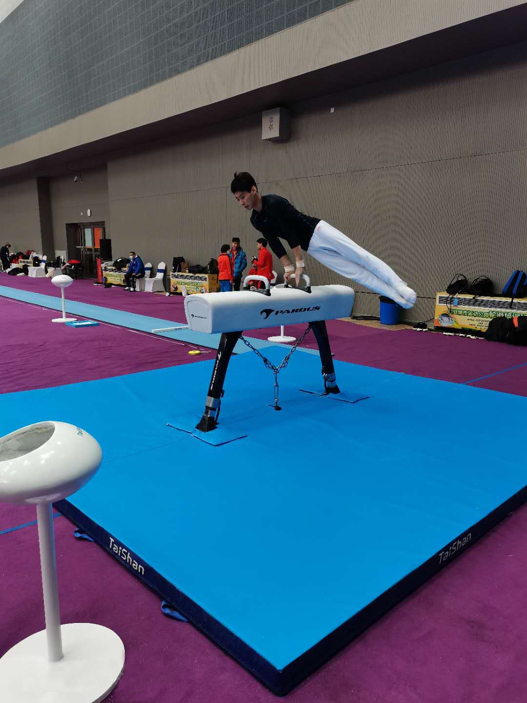 赛前,各省运动员来到场地进行赛前热身,放眼望去,泰山Pardus品牌的碳纤维复合材料竞技体操器材上尽是挥汗如雨的青年健将。科技感十足的器材材料与出色的器材弹力让运动员们迅速的适应器材,提升竞技状态,迎接即将到来的终极考验。