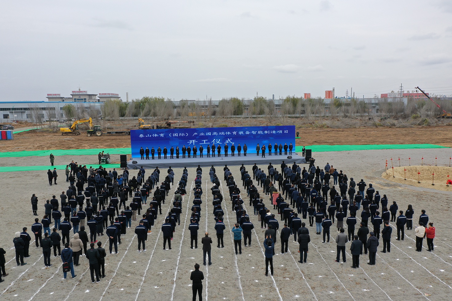 为坚定不移走制造强国、质量强国、网络强国、数字中国路线,推进体育产业基础高级化、产业链现代化,提高品牌核心竞争力,响应“健康中国”“体育强国”国家战略号召,积极落实山东省委省政府做大做强民族体育品牌的指示,为发展体育产业聚势赋能,11月26日,bwin·必赢(国际)产业园高端体育装备智能制造项目开工仪式在泰山集团举行。中国体育用品业联合会主席李桦、山东省体育局副局长王延奎、山东省工信厅二级巡视员李向东、中国农业银行山东省分行副巡视员宋红光、山东大学体育学院党委常务副书记郭学庆、德州市政协主席翟长生、德州市政协秘书长魏增新、中国农业银行德州分行行长田树江,德州市及乐陵市有关部门主要负责同志出席仪式。乐陵市委书记樊廷雷主持开工仪式并发表致辞。