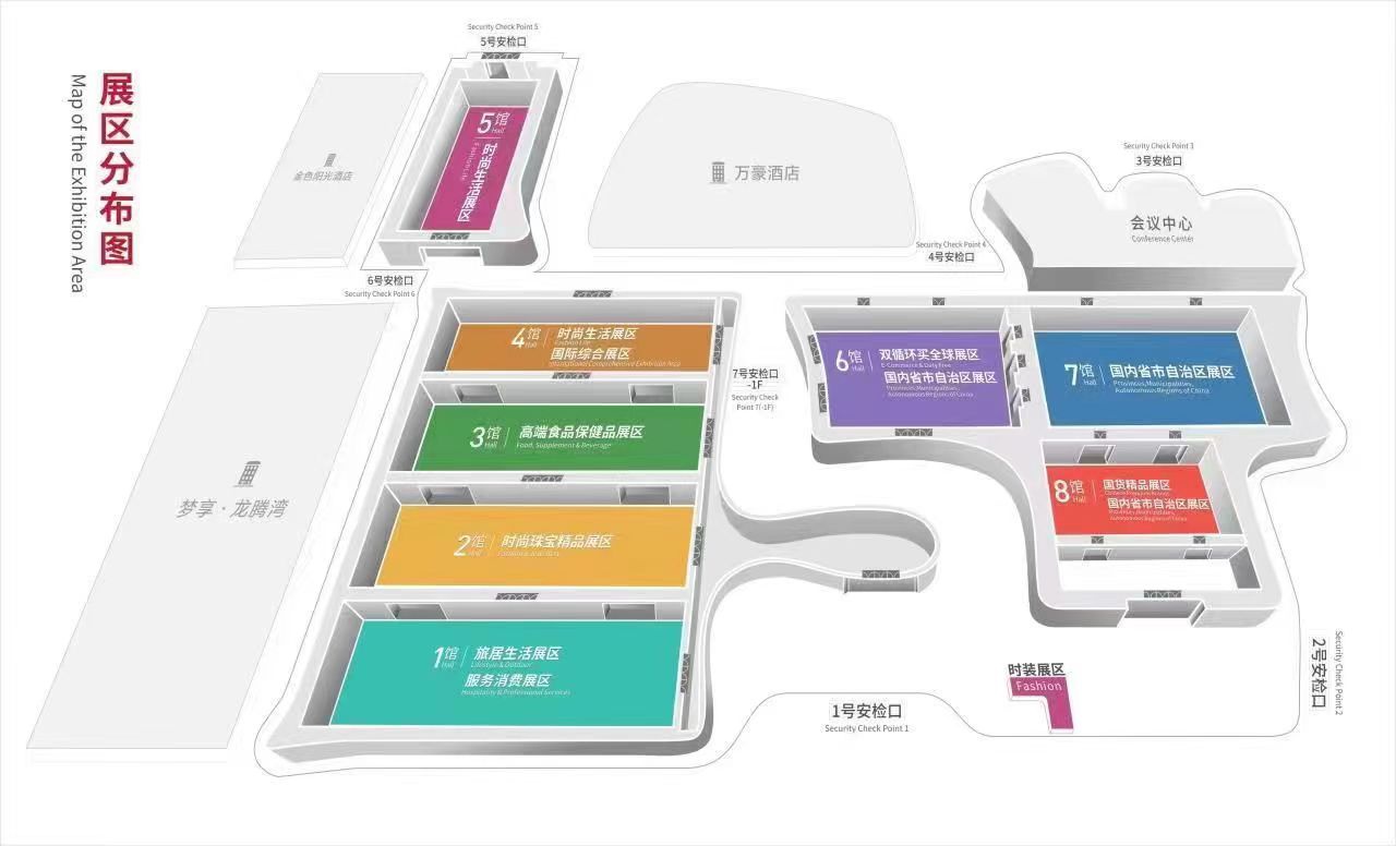 国际展区总面积8万平米,占参展总面积80%,包括6个展馆。其中,1号馆至5号馆为独立品牌展区,6号馆为双循环买全球展区。