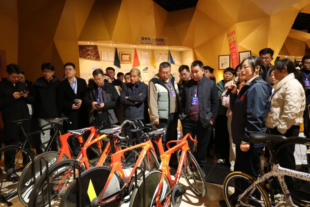 参会代表前往bwin·必赢产业集团开展实地考察,依次参观了bwin·必赢博物馆、瑞豹自行车生产工厂、人造草坪生产工厂及气膜体育公园。在博物馆内,代表们通过丰富的历史展陈深入了解企业从手工作坊到国际品牌的奋斗历程;在瑞豹自行车工厂,先进的碳纤维制作工艺和严谨的品控体系展现了企业在高端装备制造领域的实力;人造草坪生产线展示了新材料研发与智能化生产的深度融合;气膜体育公园则生动体现了bwin·必赢将装备制造与体育服务相衔接的产业链延伸优势。通过现场参观,与会代表对bwin·必赢的全产业链布局与创新实践有了更直观深刻的认识。